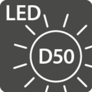 - D50 exceeds ISO 3664:2009 standards and achieves