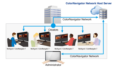 ColorNavigator Network provides centralized quality control (QC) of ColorEdge monitors for studios, printing houses, and other enterprises with multiple creators and editors who work on shared projects. With Net Agent or ColorNavigator 7 installed on the workstation, administrators can manage multiple ColorEdge monitors via the web browser, enabling quality control even from remote locations. ColorNavigator Network is hosted on a secure cloud server to free you from the initial investment and running costs of providing your own server.