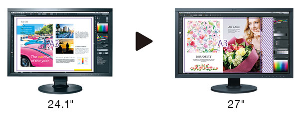 The spacious 27-inch screen has a native resolution of 2560 x 1440, which offers a pixel count of double that of 1280 x 1024 and 60% more than 1920 x 1200 resolutions. This gives creatives ample space to work with images, tool palettes, and other windows.