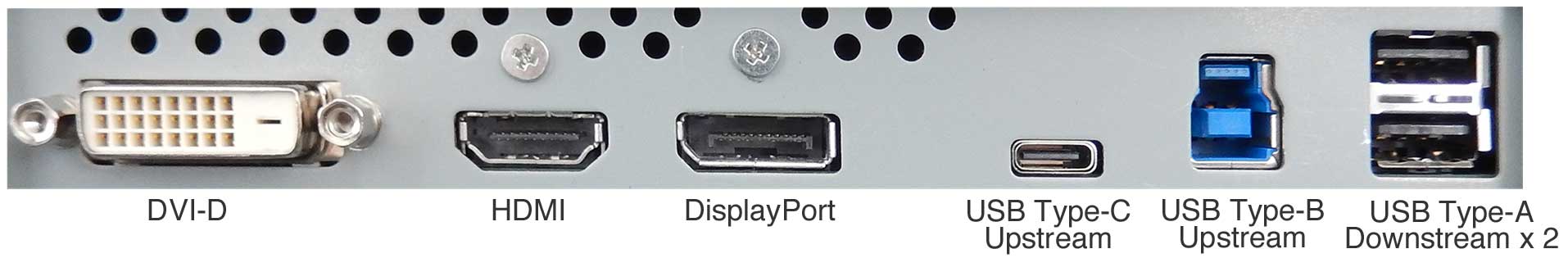 The ColorEdge CS2731 is equipped with HDMI, DisplayPort, and DVI-D inputs. In addition to USB Type-C, it also has a USB Type-B and four USB Type-A ports.