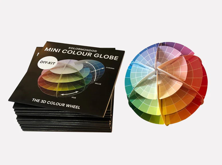 The KolorMondo Mini is specifically designed for students, designers or any lover of colors. It is also the perfect gift for all ages. It is small, only 4.75 inches. After being built, it can be hung up by stringing a thread through the hole provided.