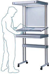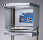 JUST Normlicht’s new multi-purpose Proof Top is useful for several prepress requirements and adaptable to different workplace conditions. It can be used as a stand alone unit, placed on existing furniture as a desktop unit or mounted on the wall. Equipped with a trolley, the Proof-Top is turned into a free-standing mobile and space-saving Proof Station (see accessories)