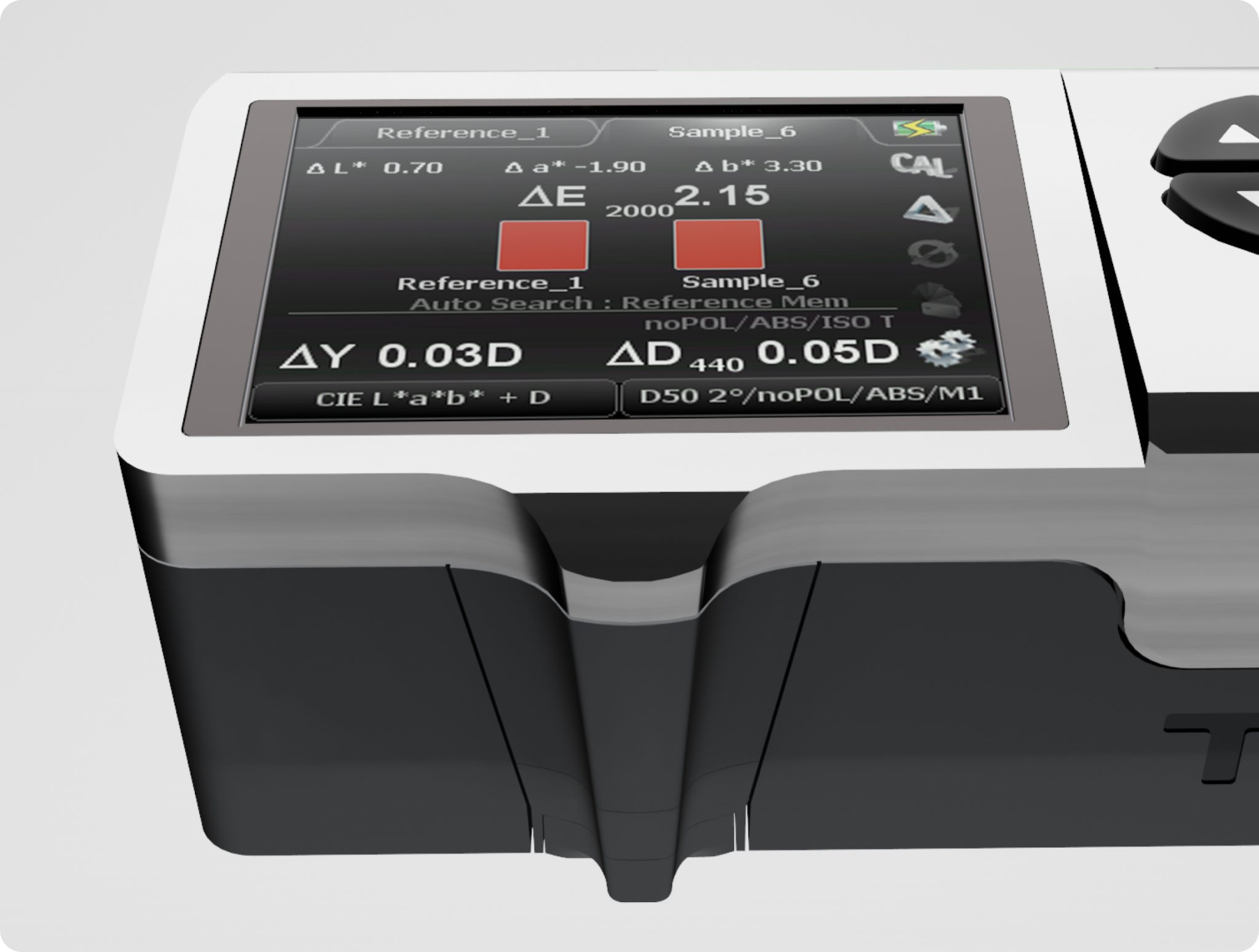 All standard colorimetric functions are displayed clearly. Even the entire L*a*b*- color circle appears in the display. Reference colors and complete digital color books can be saved in the color library.