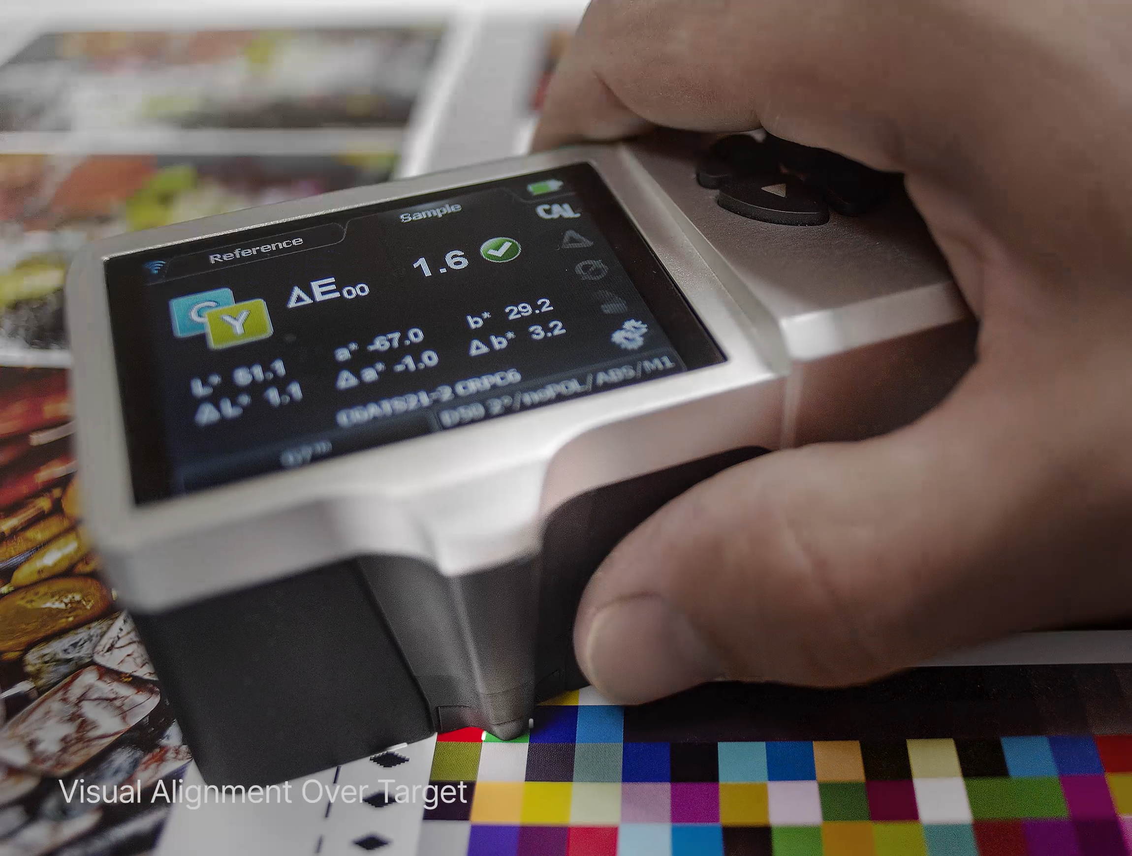 Using measurement technology for quality assurance in print is a universally accepted practice these days. SpectroDens is your all-purpose, modern measurement device. Whether it be in pre-print for verifying proofs, for ongoing quality control at the printing press, during delivery inspection of paper and print products or in a color lab, SpectroDens is exceptionally suitable, whatever your application. Thanks to the individually adjustable display functions, you can quickly set up the device for your particular job.